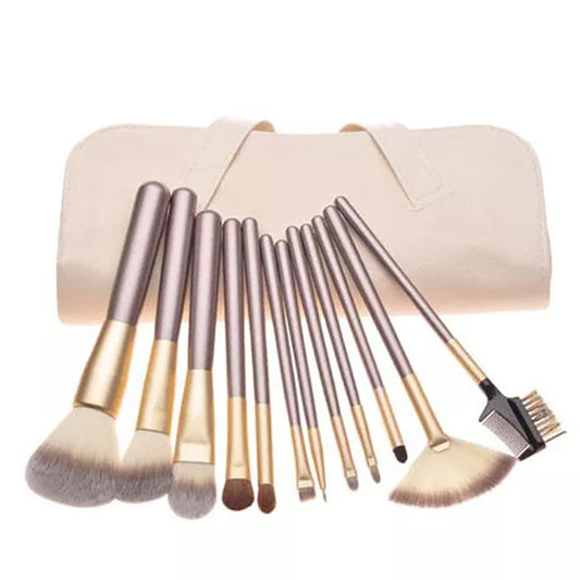 24‑Piece Professional Makeup Brush Set with Luxury Wooden Handles & Storage Roll – Champagne & Silver Options